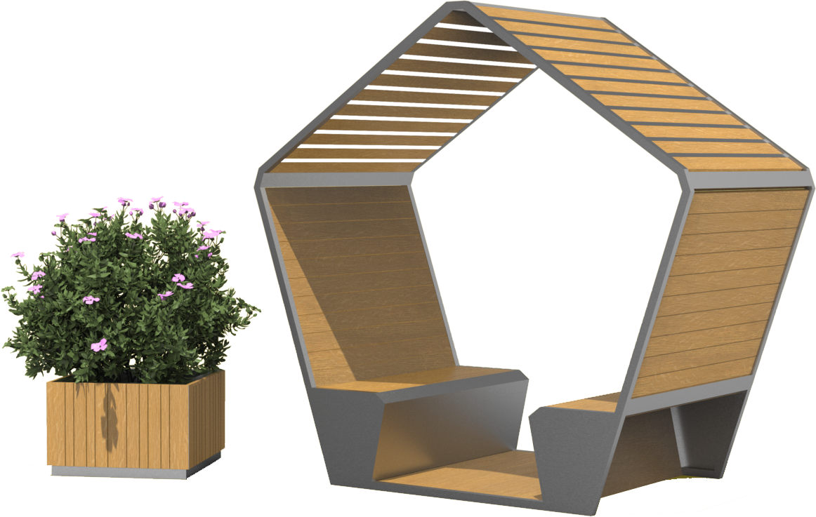 Наиболее эффектно и красиво выглядят МАФы, изготовленные из нескольких видов материала. Такие конструкции могут иметь разные габариты и формы. Особенностью является мобильность и легкость при установке.